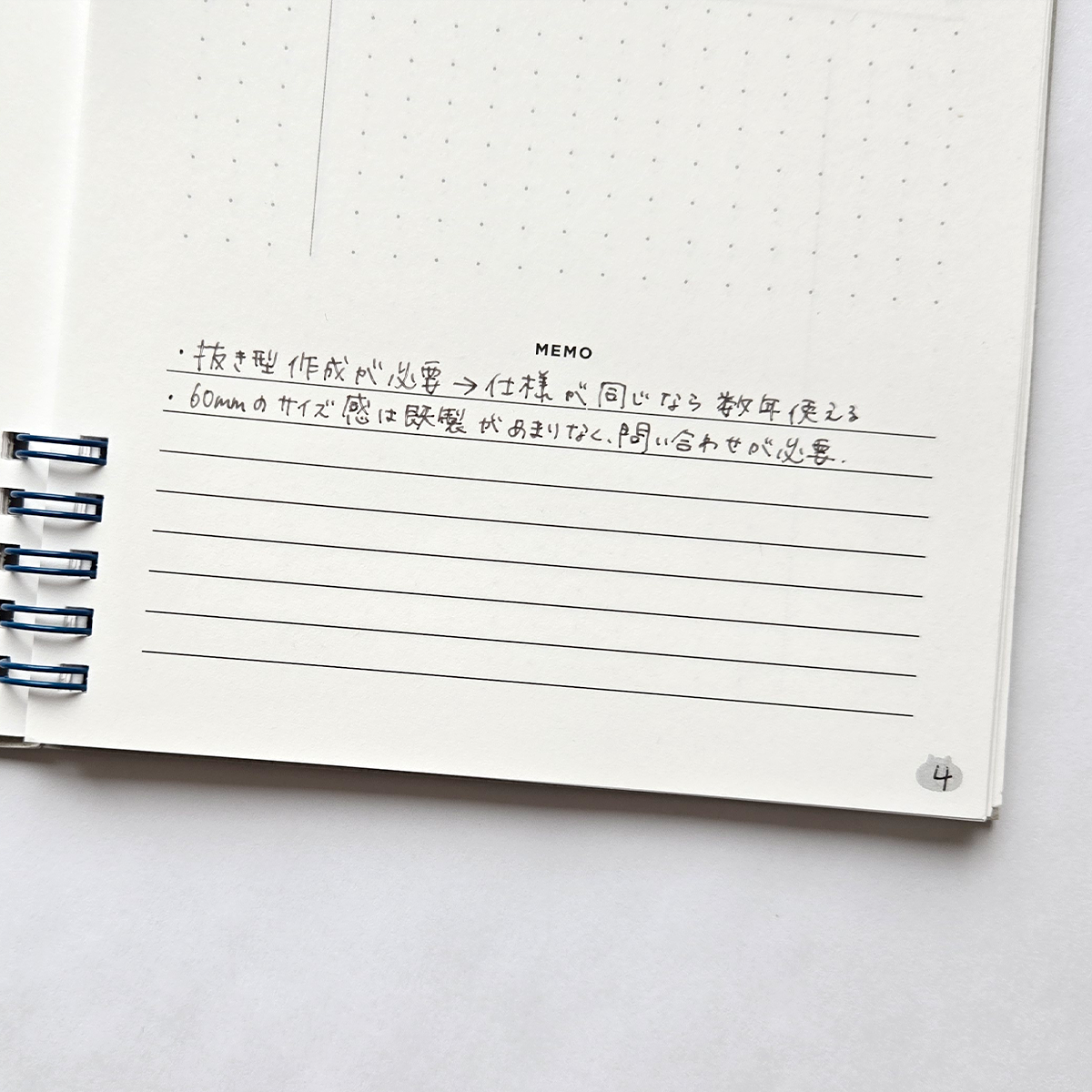 メモ欄は次に似た仕事をすることがある時に参考になりそうなことを書いています。失敗したこと、うまくいったこと、注意事項、スケジュール感などをメモっておくと未来の自分がとても助かります。