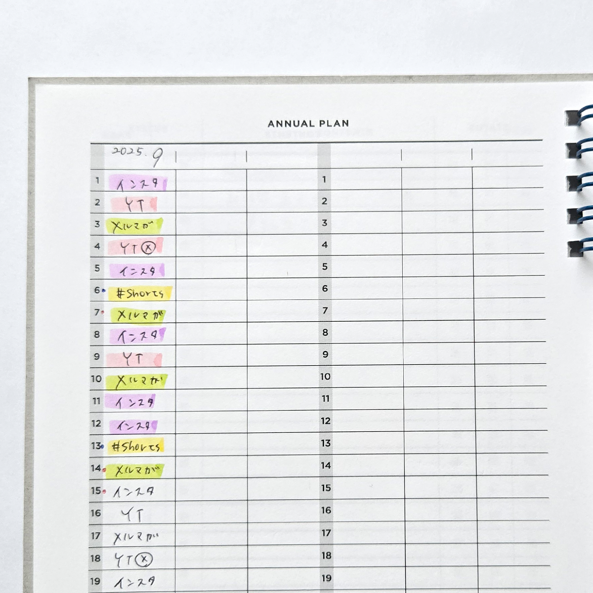 わたしはSNSの更新スケジュール書き込み、投稿できた日に色を塗って使っています。